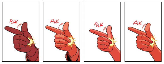 As someone with a lifelong interest in classical mythology and a deep passion for music, it absolutely hits a sweet spot in my mental landscape. Other, smarter people have already examined the issue in a more general sense, but I wanted to really close in on an action that repeats throughout the comic; the snapping of one's fingers.
